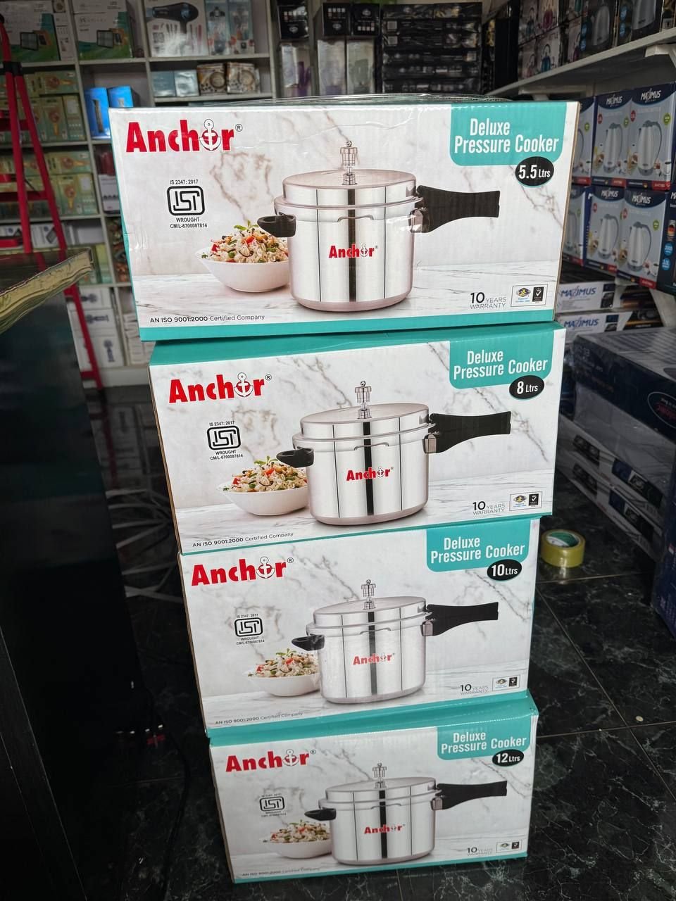 The Anchor Deluxe Pressure Cooker is built from high-quality stainless steel with durable handles. Available in multiple sizes (5.5L, 8L, 10L, 12L), it ensures fast cooking, safety, and energy efficiency.