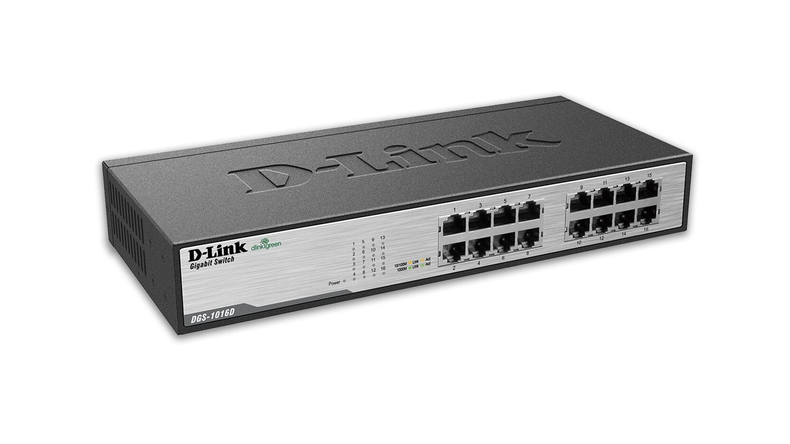 The D-Link DGS-1016D is a high-performance unmanaged Gigabit switch designed for small to medium businesses, workgroups, and growing networks. With 16 auto-sensing Gigabit Ethernet ports, it delivers fast and reliable connectivity for bandwidth-hungry applications like video streaming, VoIP, large file transfers, and network backups.