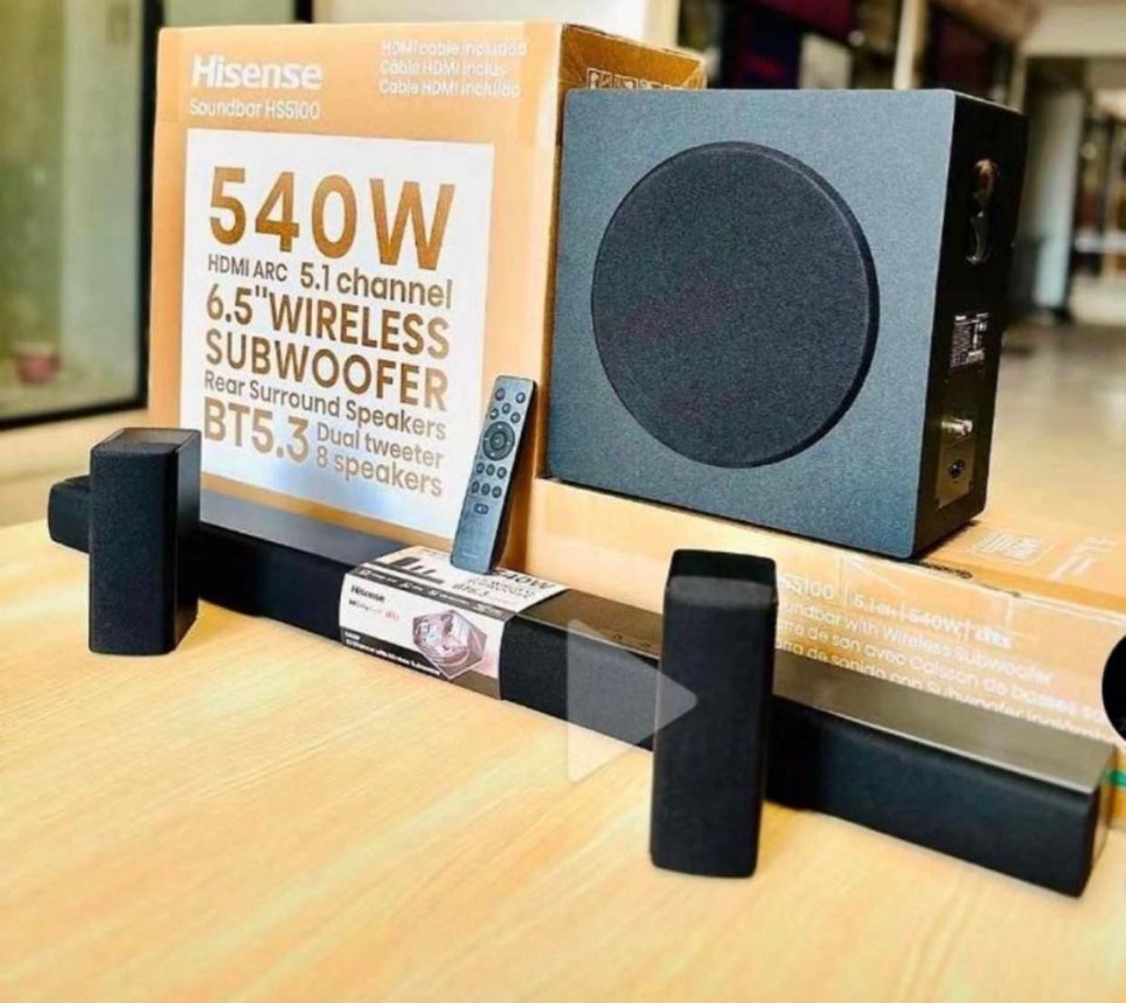 Transform your home entertainment experience with the Hisense HS5100 Soundbar. Delivering immersive 5.1 surround sound, it includes a 6.5-inch wireless subwoofer and Bluetooth 5.3 connectivity for powerful and seamless audio performance.