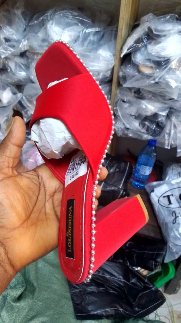 Elegant ladies block heel slippers designed with a rich red finish and stylish side bead detail for a classy, feminine look. The sturdy block heel offers comfort and balance, making it perfect for parties, dinners, outings, and special occasions.