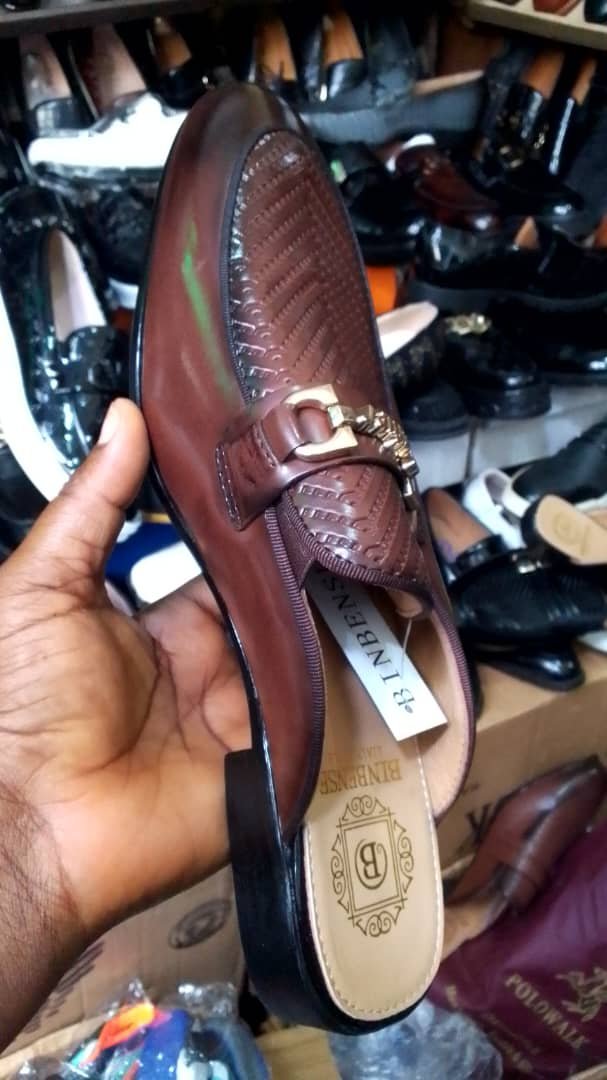 Elegant men’s brown leather slip-on loafers with metal buckle detail. Designed for comfort and a sharp corporate look—perfect for office wear, meetings, church, and formal outings.
