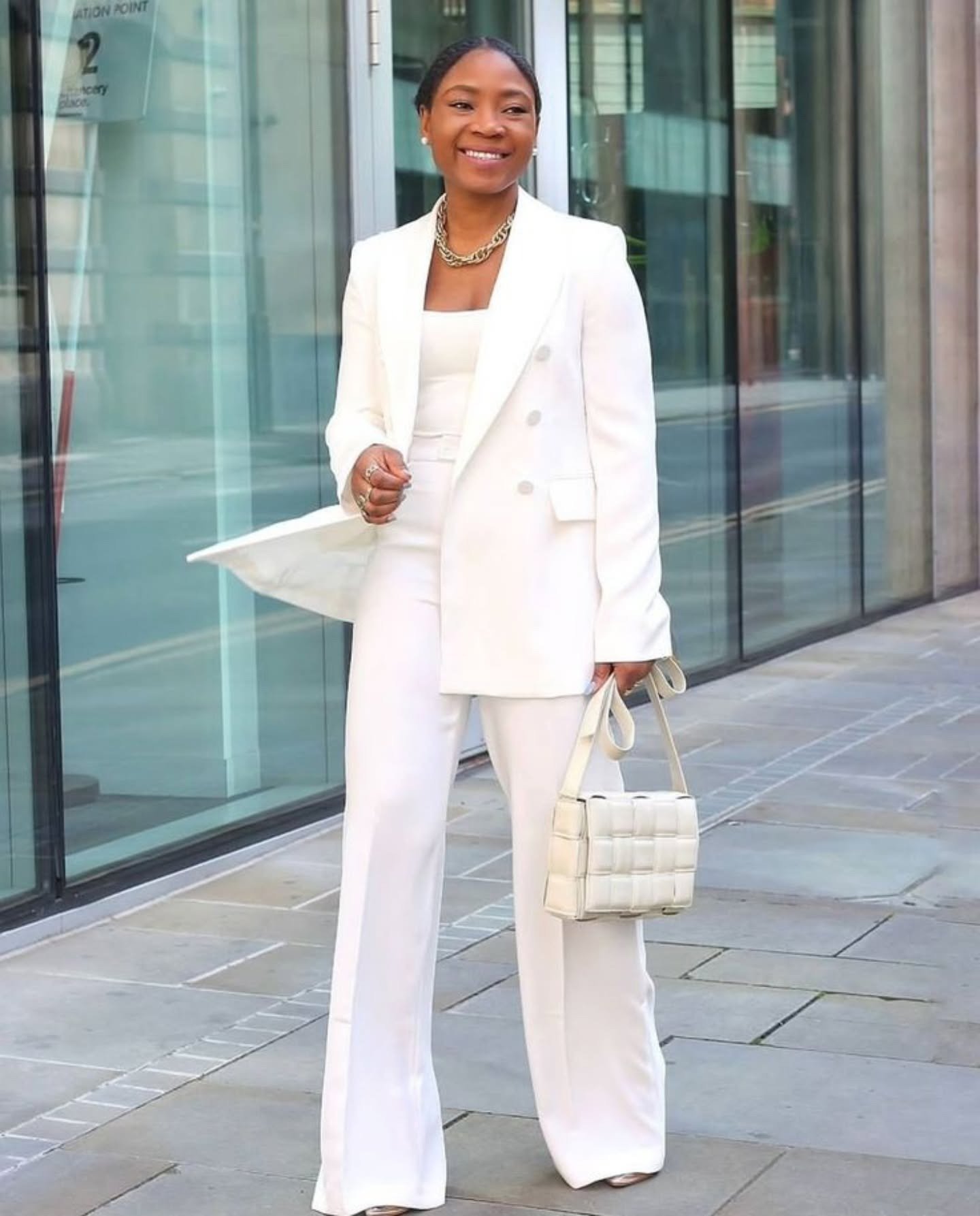 white corporate outfit