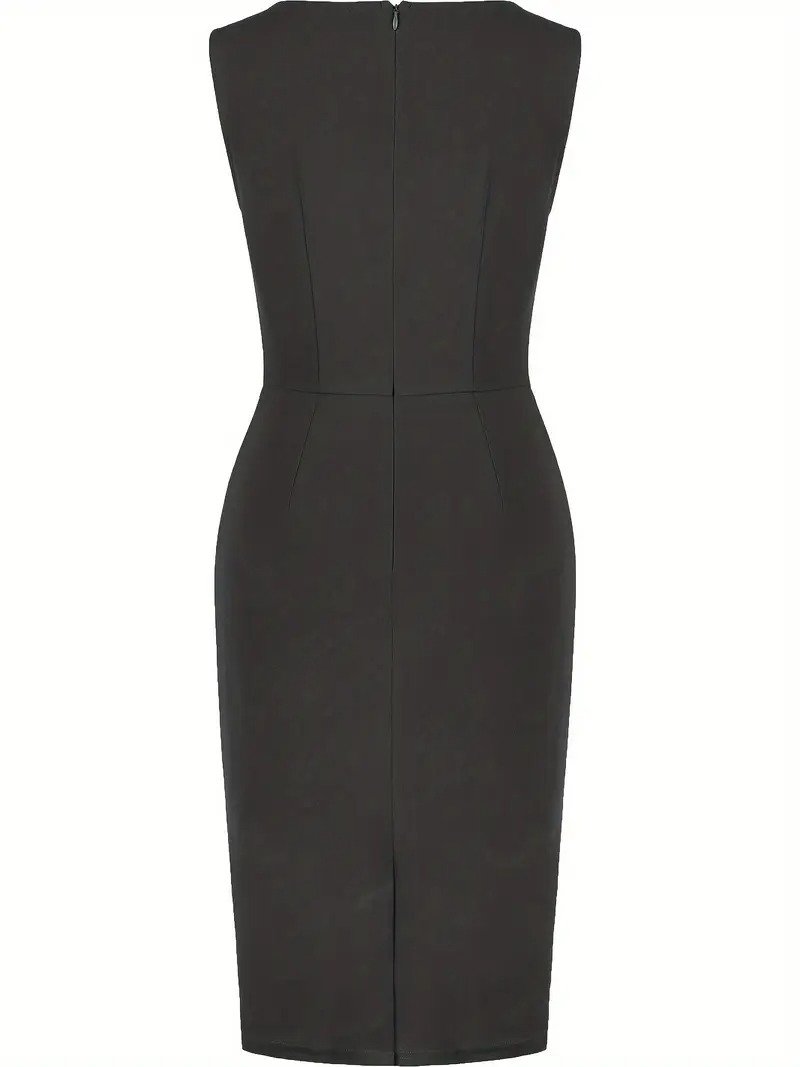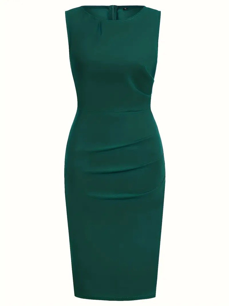 Emerald Green Knee-Length Pencil Dress with Ruching Detail, Slim Fit H-Silhouette for All-Season Wear, Machine Washable & Dry Cleanable, Formal Attire, Smooth Fabric